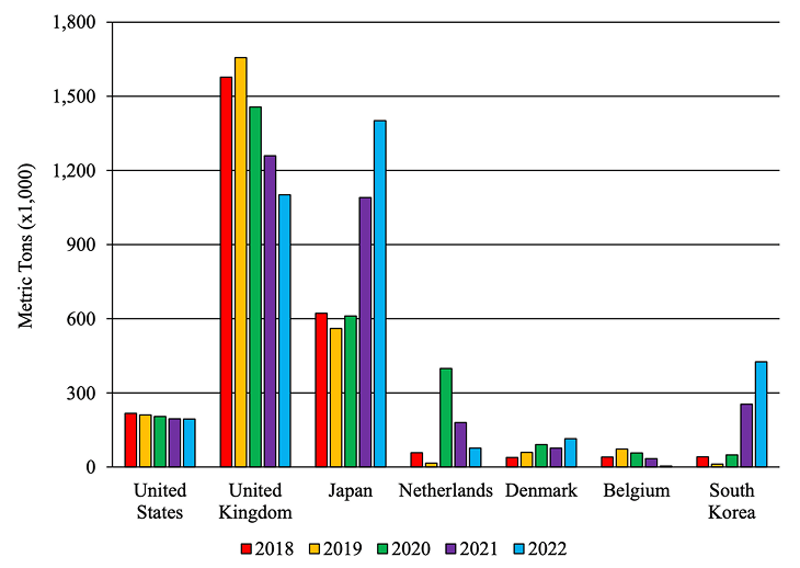 下記グラフのとおり、日本は2021年から急激にカナダからの木質ペレットの輸入を増やしています。